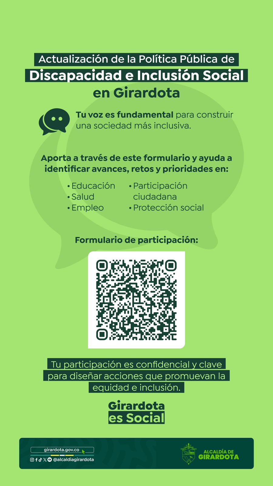 Los aportes se reciben a través del correo electrónico sub.participacionciudadana@girardota.gov.co