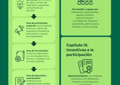 La intención es que el municipio cuente con mejores herramientas para que los diferentes actores de la comunidad —organizaciones, colectivos y ciudadanos en toda su diversidad— puedan participar activamente en la toma de decisiones y en la construcción conjunta de bienes y servicios públicos. También buscamos fortalecer la transparencia y legitimidad de las inversiones públicas, de manera que respondan mejor a las necesidades de la gente.